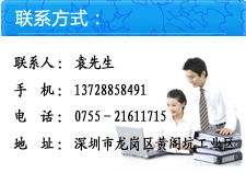 深圳地址:深圳市龍崗區(qū)黃閣坑工業(yè)區(qū)38號 袁生 13728858491、0755-21611715 東莞地址:東莞市鳳崗鎮(zhèn)沙嶺工業(yè)區(qū)37號 黃生 13377707909 0769-87519080 展柜地址:東莞市鳳崗天眾電子城A193 聯(lián)系人:韋小姐 15658170836